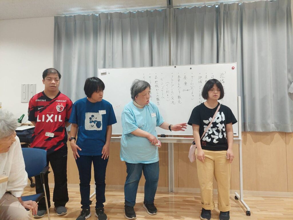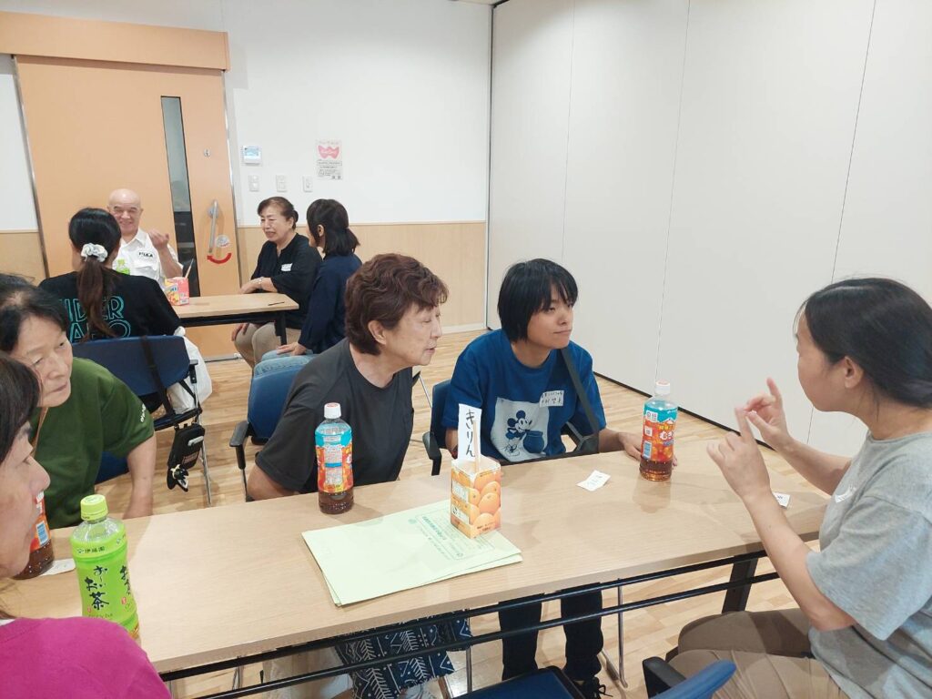 テーブルごとの交流や食事、ボッチャやビンゴゲームなどがあり、仲間たちは全力で楽しんでいました。参加されている皆さんと一緒に笑顔で過ごすことができました。
